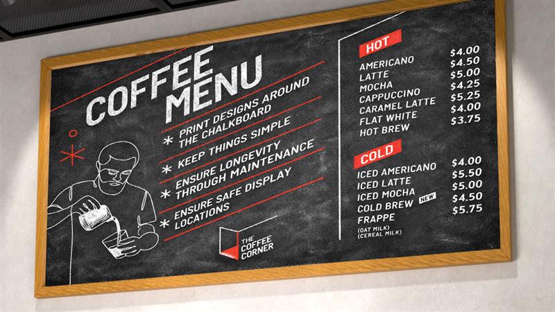 • The signs need to be reprinted whenever you want to update items, prices, or layouts, which can be both time-consuming and a bit costly.