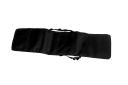 The carrying case is designed to hold one teardrop banner, a disassembled flagpole set, a cross base, and a folded and empty water bag. The case includes pockets to place each flagpole piece and a pouch for the cross base to ensure that everything is secure within the case. The teardrop banner case can zip up to fully secure its contents and be carried using the handles or the included shoulder strap.
